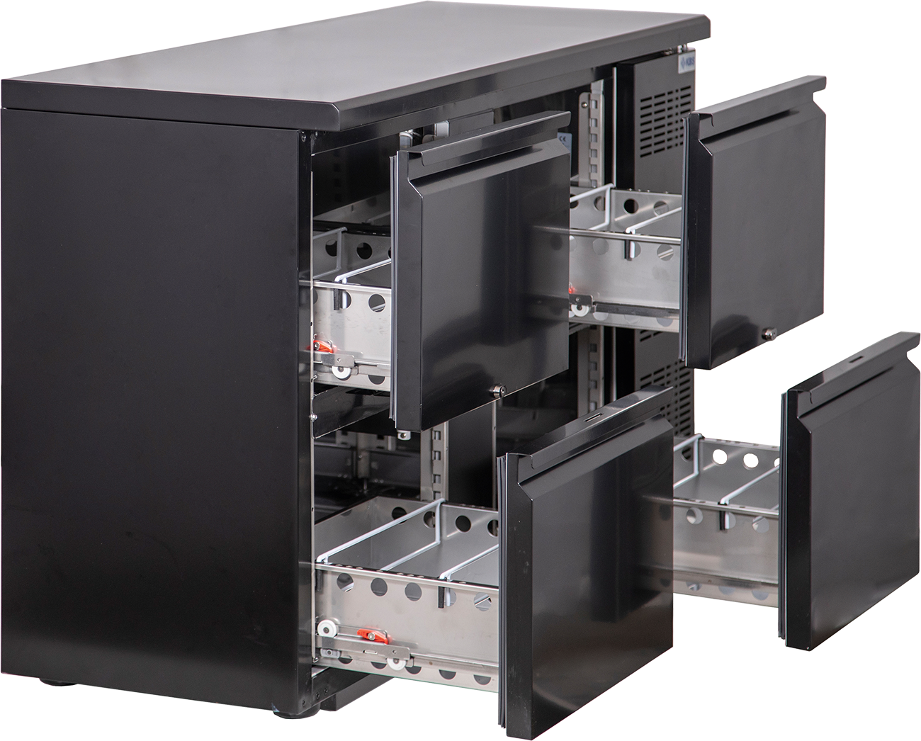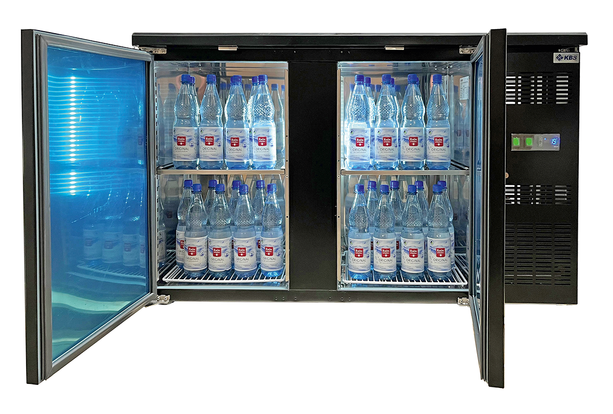 Elektronische Steuerung. Digitale Temperaturanzeige. Umluftkühlung. Leicht zu reinigender Innenraum. Je Türfach 2 Abstellflächen. Je Türfach maximal 7 Abstellflächen möglich. Türen mit Schloss. Bodenrost für verbesserte Luftzirkulation hinter jeder Tür. Automatische Heisgastauwasserverdunstung. Verdampfer mit spezieller Beschichtung. Höhenverstellbare Ausgleichsfüße. Abmessungen außen (B x T x H) 1462 x 513 x 860 mm. Temperaturbereich von 2 °C bis 10 °C. Bestückungsmöglichkeit Dosen, Flaschen. Außenmaterial Stahlblech schwarz lackiert und Kunststoff. Innenmaterial Edelstahl. Anschlußwert 0,32 kW 230 Volt. Bruttogewicht 89 Kg. Serienzubehör Je Tür 2 Abstellflächen und Schloß. Kältemittel R 600a (Isobutan)/GWP 3. Luftschallklasse D bei 47 dB. Nutzinhalt Kühlung 226 Liter. Energieverbrauch 1044 KWHJ. Energieeffizienzklasse C. Energieeffizienzspektrum A +++ bis G. Klimaklasse 4. EPREL Registrierungsnummer 1473365. EU-Labelverordnung 2015/1094-IV.