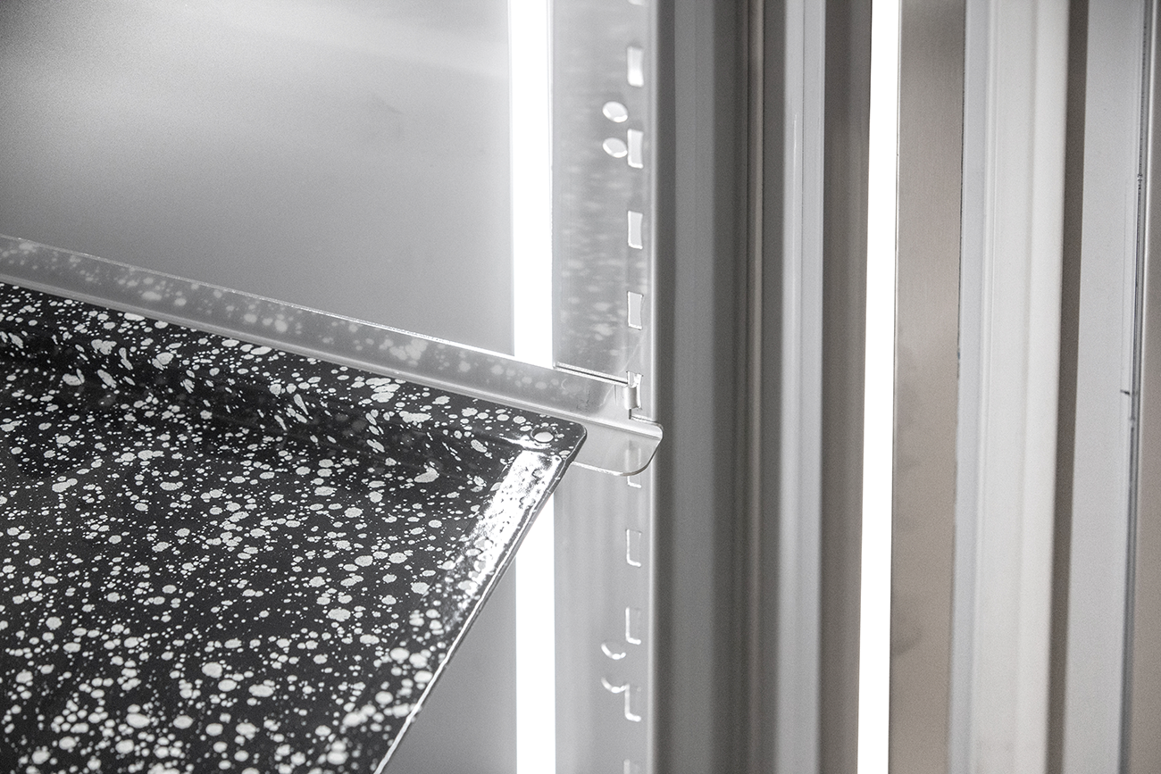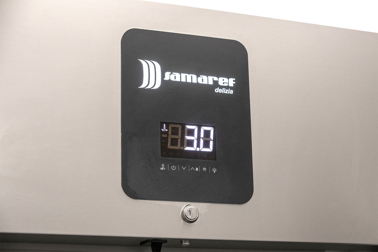 Euronorm-Bäckerei Kühlschrank. Backblechmaß 600 x 800 mm. Premiumgerät hergestellt in Italien. Innen und außen aus CNS AISI 304. Motorraum, äußere Rückseite und äußere Boden aus verzinktem/ kolaminiertem Stahl. Intuitive elektronische Steuerung. Touch Screen Bedienung. Verdampferfreier Innenraum. Beschichteter Verdampfer. Innenraum mit Luftleitblechen für eine optimale Luftzirkulation. Dreistufiges Management der relativen Luftfeuchtigkeit (hoch, mittel, niedrig). Automatische Heißgas-Abtauung. Energiesparende 80 mm Isolierung. Serienzubehör 20 Paar Auflageschienen für Backblechmaß EN 600 x 800. Innenraum mit Rasterleisten und L-Schienen. Selbstschließende Tür. Tür bei 105° offenstehend. Tür mit Schloss und durchgehender Griffleiste. Servicefreundliche und leicht wechselbare Türmagnetsteckdichtung. Türanschlag rechts, wechselbar ohne Umbaukit auf links. Vertikale LED-Innenbeleuchtung. Vier höhenverstellbare CNS Füße 90 bis 125 mm. Abmessungen außen (B x T x H) 810 x 1060 x 2120 mm. Temperaturbereich von -2 °C bis 10 °C. Bestückungsmöglichkeit EN 600×800. Außenmaterial CNS AISI 304 dreiseitig. Innenmaterial CNS AISI 304. Anschlußwert 0,337 kW 230 Volt. Bruttogewicht 200 Kg. Serienzubehör 20 Paar Auflageschienen. Kältemittel R 290 (Propan)/GWP 3. Bruttoinhalt 935 Liter. Nutzinhalt Kühlung 690 Liter. Energieverbrauch 844 KWHJ. Energieeffizienzklasse C. Energieeffizienzspektrum A +++ bis G. Energieeffizienzindex EEI 48,00. Klimaklasse 5. EPREL Registrierungsnummer 2229317. EU-Labelverordnung 2015/1094-IV.