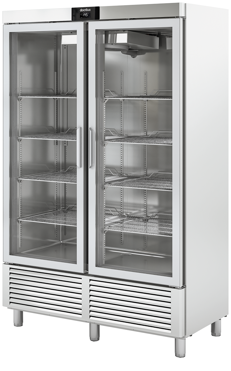 Europäisches Markenprodukt. CNS 18/10 dreiseitig. Elektronische Steuerung. Innenbeleuchtung. Umluftkühlung. Beschichteter Verdampfer im Innenraum. Tauwasserverdunstung. Innenraum mit abgerundeten Ecken. Roste 560 x 542 mm beschichtet. Zwischenroste 450 x 158 mm. Selbstschließende Glastüren. Eingelassene und ergonomisch geformte Griffleiste. Leicht wechselbare Türmagnetsteckdichtung. Höhenverstellbare Ausgleichsfüße aus CNS 125 bis 200 mm. Abmessungen außen (B x T x H) 1370 x 730 x 2160 mm. Temperaturbereich von -2 °C bis 8 °C. Außenmaterial Edelstahl AISI 304 zweiseitig, Glastüren isolierverglast. Innenmaterial Edelstahl AISI 304. Anschlußwert 0,396 kW 230 Volt. Bruttogewicht 198 Kg. Serienzubehör 8 Roste plus 4 Zwischenroste rilsaniert. Kältemittel R 290 (Propan)/GWP 3. Bruttoinhalt 1201 Liter. Nutzinhalt Kühlung 937 Liter. Energieverbrauch 1822 KWHJ. Energieeffizienzklasse E. Energieeffizienzspektrum A +++ bis G. Energieeffizienzindex EEI 85,00. Klimaklasse 4. EPREL Registrierungsnummer 685232. EU-Labelverordnung 2015/1094-IV.