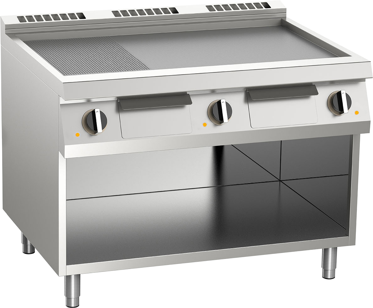 Elektro-Grillplatte geteilt aus Edelstahl 16,2kW mit 3 Heizzonen offener Unterbau