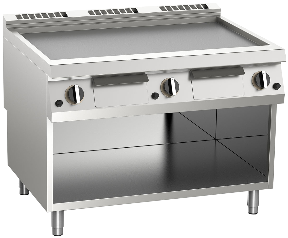 Elektro-Grillplatte glatt aus Edelstahl 22,5KW mit 3 Heizzonen offener Unterbau