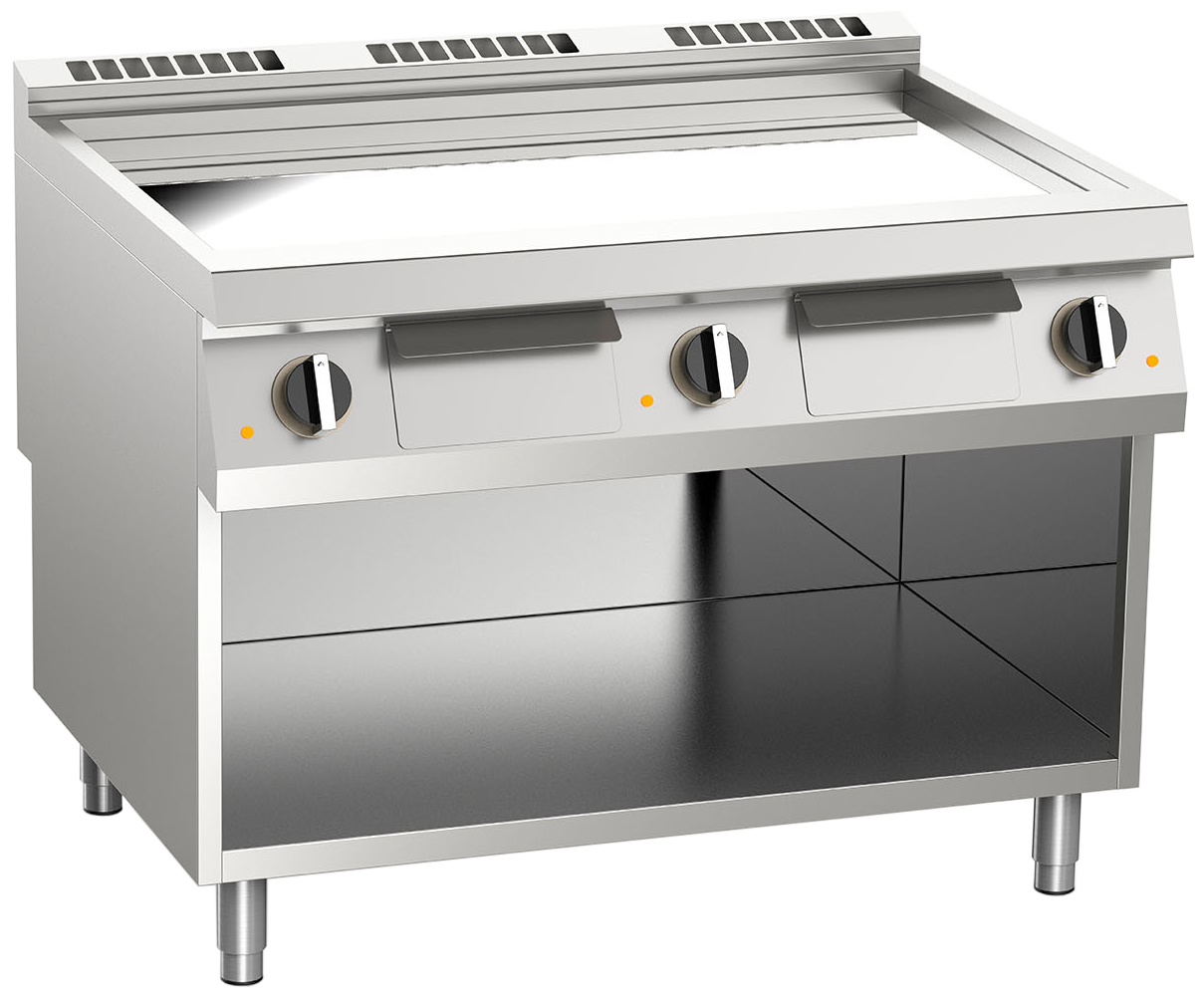 Elektro-Grillplatte glatt verchromt 22,5kW mit 3 Heizzonen offener Unterbau