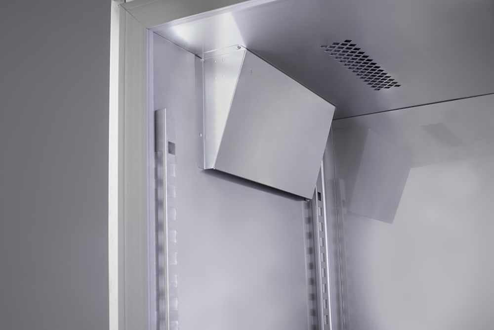 Speiseeis-Lagerschrank Energiesparausführung. Außenmaterial Edelstahl AISI 430 dreiseitig. Innenmaterial Edelstahl AISI 304. Rückseite Stahlblech verzinkt. Stille Kühlung mit zuschaltbarem Umluftlüfter. Elektronisches Thermostat. Türalarm. Energiesparfunktion. Manuelle Abtauung. Volltür abschließbar und mit Druckausgleichsventil. Tür mit eingelassener Griffleiste zum leichten Öffnen. Magnetische Türdichtung. 90 mm Energiesparisolierung. 5 herausnehmbare und höhenverstellbare Roste GN 2/1, rilsaniert grau. Maximale Bestückung mit 10 Rosten. Maximale Aufnahme von 58 Eisschalen je 5 Liter. 4 Rollen für leichte Mobilität vor Ort. 2 höhenverstellbare Ausgleichsfüße. Abmessungen außen (B x T x H) 730 x 934 x 1985 mm. Temperaturbereich von -10 °C bis -25 °C. Bestückungsmöglichkeit Eisschale. Außenmaterial Edelstahl AISI 430 dreiseitig. Innenmaterial Edelstahl AISI 304. Anschlußwert 0,375 kW 230 Volt. Bruttogewicht 151 Kg. Serienzubehör 4 Einweg Rollen, vorne 2 Stellfüße, Tür mit Schloss. Kältemittel R 290 (Propan)/GWP 3. Bruttoinhalt 600 Liter. Nutzinhalt Kühlung 451 Liter. Energieverbrauch 1277 KWHJ. Energieeffizienzklasse B. Energieeffizienzspektrum A +++ bis G. Energieeffizienzindex EEI 35. Klimaklasse 5. EPREL Registrierungsnummer 347899. EU-Labelverordnung 2015/1094-IV.