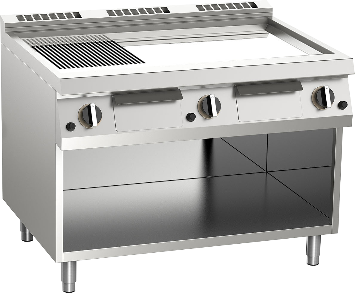 Gas-Grillplatte geteilt verchromt 21kW mit 3 Heizzonen offener Unterbau