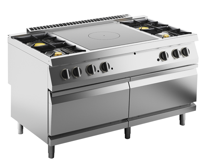 Gas-Herd 4 Brenner + 1 Glühplatte 60kW mit 2 Gas-Öfen je 8kW