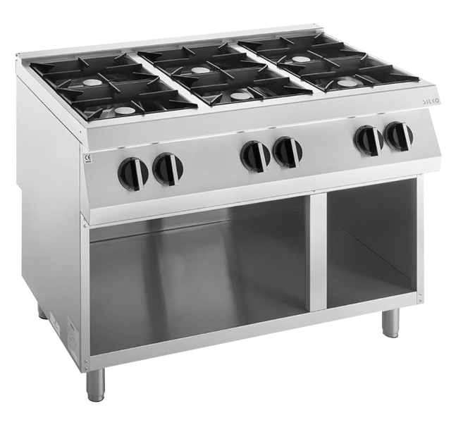 Gas-Kochfläche 6 Brenner 42 kW, offener Unterbau