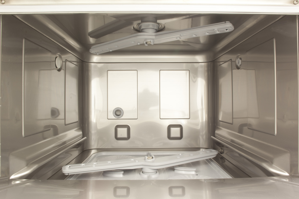 Außen- und Innenmaterial aus CNS. Elektronisch einstellbare Klar- und Spülmitteldosierpumpe. Temperaturanzeige im Display. Selbstdiagnosesystem mit Fehlercodeanzeige. Spül- und Nachspülarm aus Kunststoff. Boilersicherheitsthermostat. Automatische Wasserniveauregulierung. Pumpenschutzsiebe mit Sicherheitssystem. Eingebauter Türkontaktschalter. Doppelwandige Tür. 3 Spülprogramme. 1 Sonderprogramm für Gläser Waschgang bei 60 °C/Nachspülgang bei 67 °C. Thermostopp. Inkl. Tankflächensieb. Water-Fresh-Filtersystem gewährleistet höhere Regeneration des Tankwassers über den Nachspülprozess. Elektromechanische Steuerung. Double-Flow Pumpe. Servicefreundliche Wasch-, Nachspülarme und Düsen, ohne Werkzeug wechselbar. Abgerundete Ecken der Wanne für leichte Reinigung und verbesserte Hygiene. Schräglaufender Innenboden für besseren Laugenablauf und einfache Reinigung. Gerät nicht steckerfertig. Umfangreiches Serienzubehör. Höhenverstellbare Ausgleichsfüße. 2 Körbe aus Kunststoff 500 x 500 mm. 1 Besteckköcher 105 x 105 x 140 mm. Abmessungen außen (B x T x H) 575 x 605 x 820 mm. Außenmaterial CNS. Innenmaterial CNS. Anschlußwert 5,4 kW 400 Volt. Bruttogewicht 58 Kg. Serienzubehör 1 Neutralkorb + 1 Tellerkorb je 500x500mm 1 Besteckkorb (105x105x140mm).