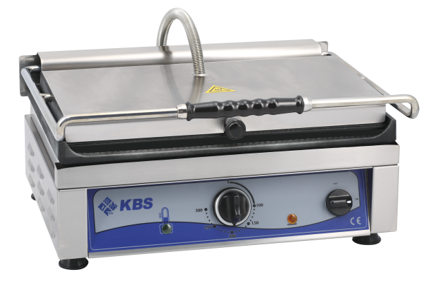 Gerät aus Chromnickelstahl. Grillfläche oben gerillt und unten glatt. Thermostat regelbar von +50 °C bis +300 °C. Grillfläche aus Gusseisen 360 x 270 mm. Betriebskontrollleuchte. Ein-/Ausschalter. Aufheiz-/Temperatur-Kontrollleuchte. Fettauffangschale. Abmessungen außen (B x T x H) 410 x 500 x 300 mm. Temperaturbereich von 50 °C bis 300 °C. Außenmaterial CNS, Grillfläche aus Gusseisen, Kunststoff. Anschlußwert 2,5 kW 230 Volt. Bruttogewicht 27 Kg. Serienzubehör Fettauffangschale.