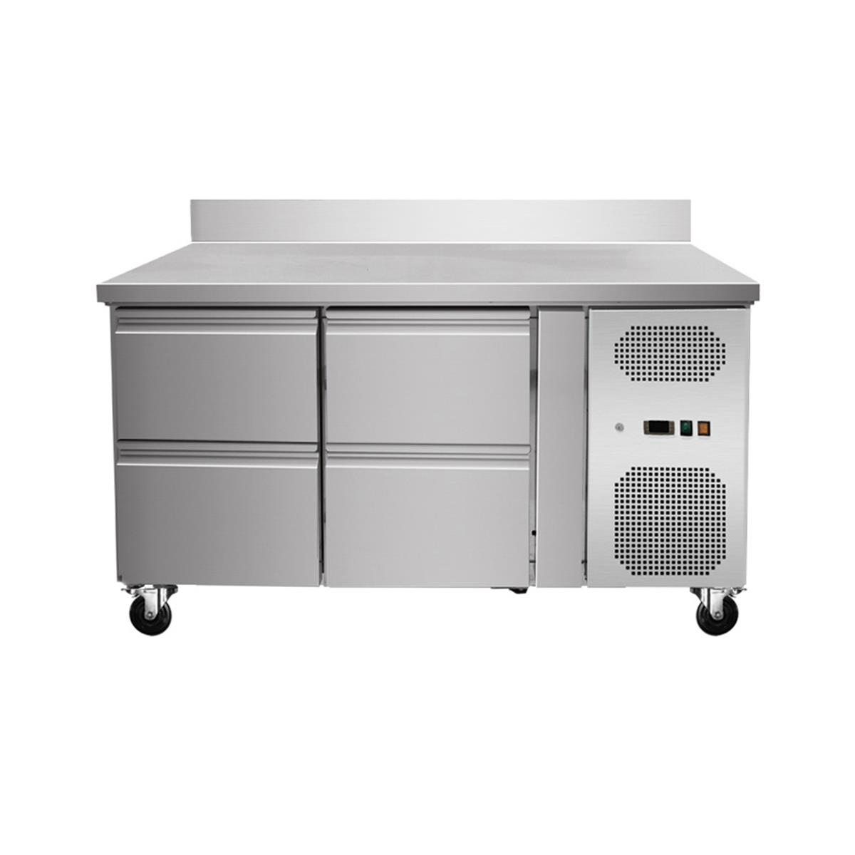 Skyrainbow Umluft Kühltisch mit 4 Schubladen und Aufkantung, -2° bis +8° C, 1360 x 700 x 860/960