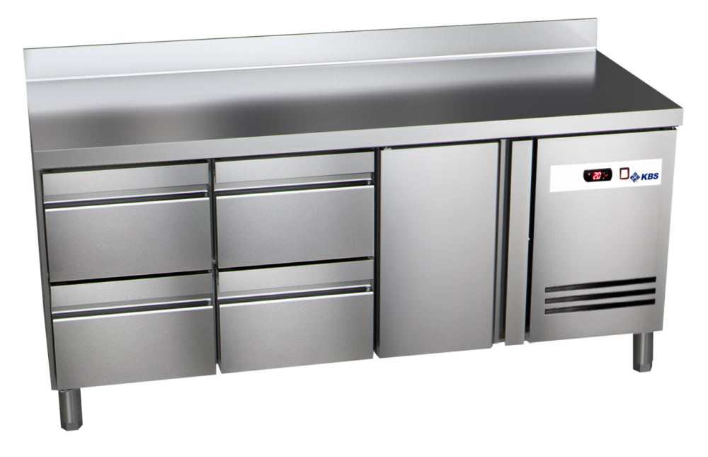 Kühltisch Ready KT3004 mit Arbeitsplatte, Aufkantung 1 Tür 4 halbe Schubladen