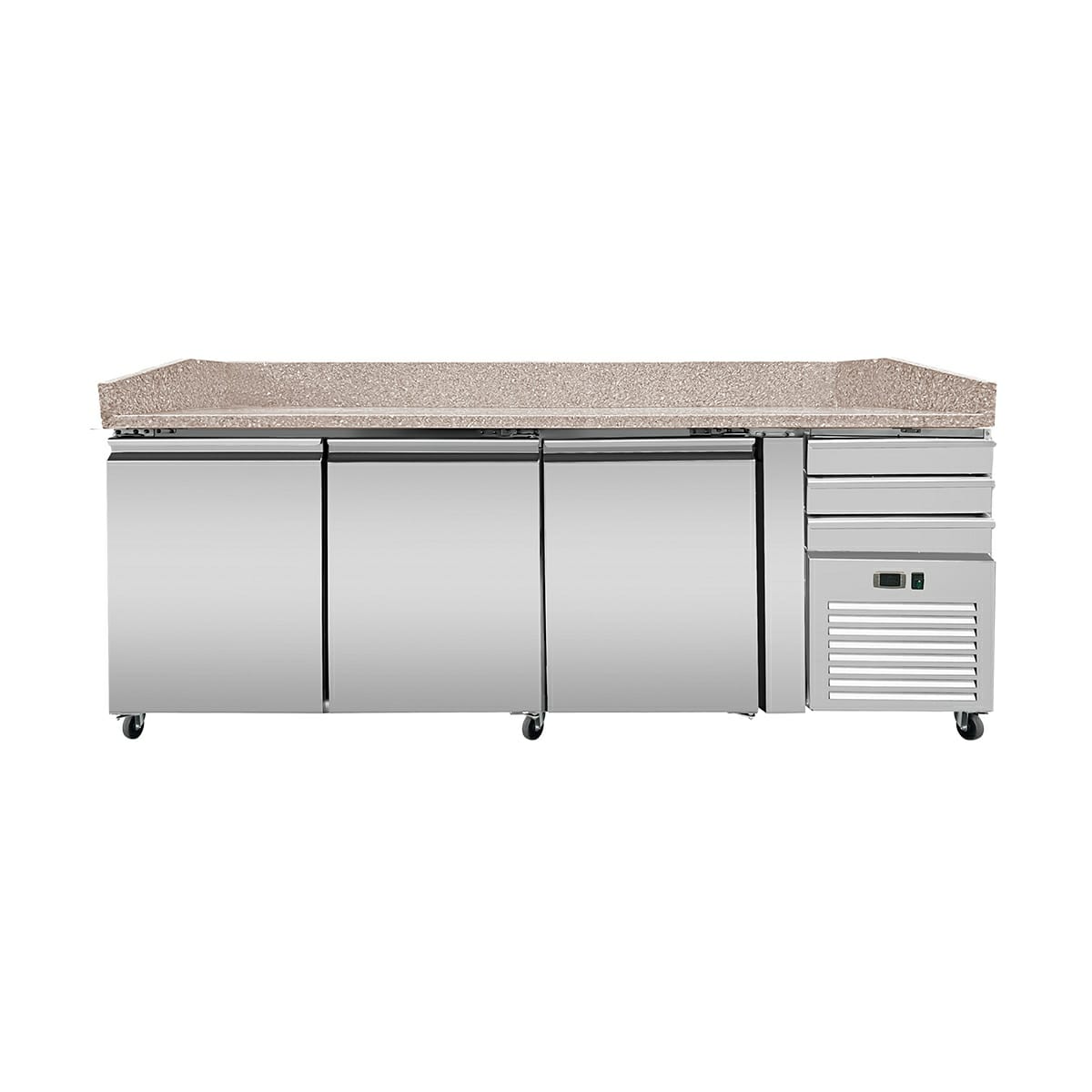 Der Skyrainbow Pizzakühltisch ist perfekt geeignet für Pizzerien, italienische Lokale und Lieferdienste. Die Granitarbeitsfläche ist ideal für die