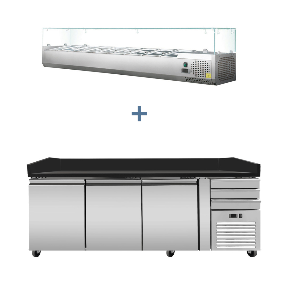 Der Skyrainbow Pizzakühltisch ist perfekt geeignet für Pizzerien, italienische Lokale und Lieferdienste. Die Granitarbeitsfläche ist ideal für die
