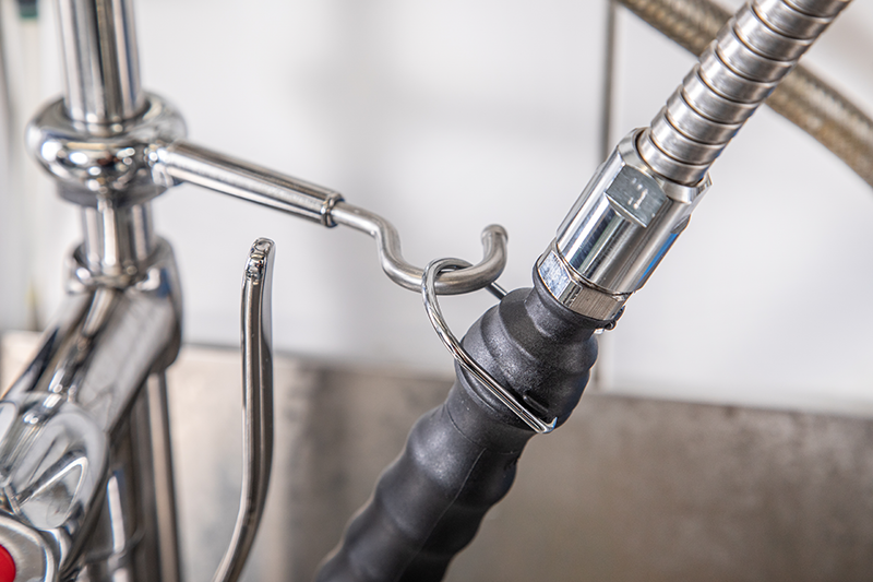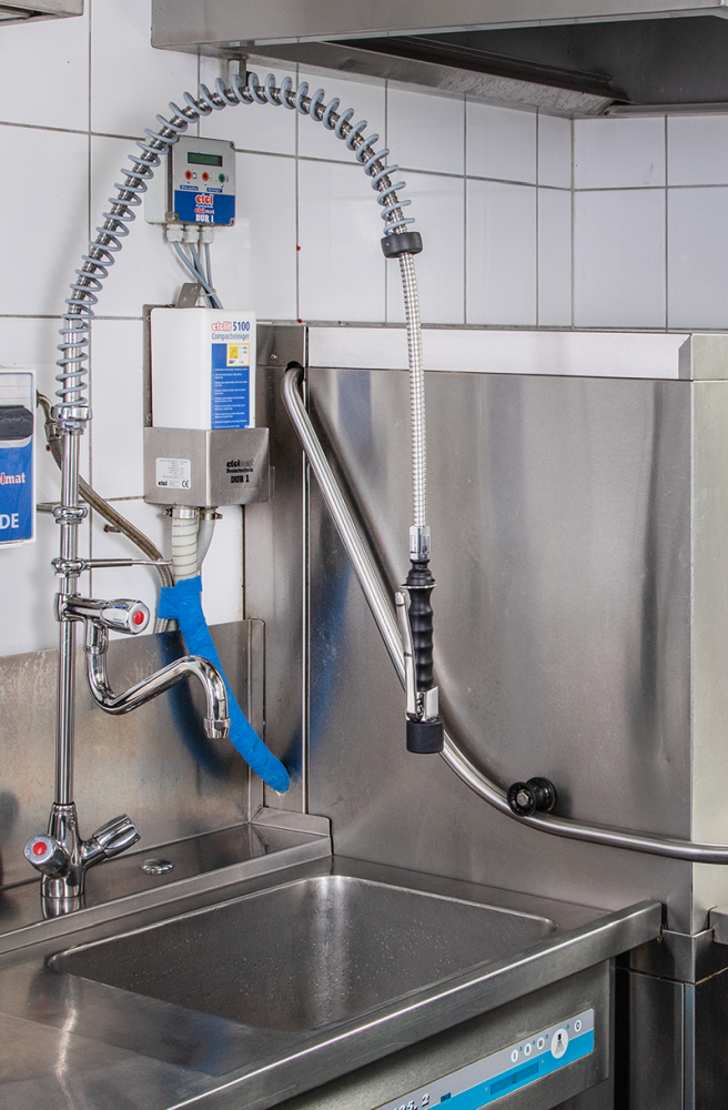 PREMIUM Geschirrwaschbrause. Save Water, Save Energy, Save Money. „Pot-Filter“ mit zusätzlichem Tropfschutz. Schwenkhahn mit wassersparendem Perlator. Geschirrwaschbrause mit Mischbatterie und Schwenkhahn PAK-Frei. LOW-FLOW Selbstschlussbrause ergonomisch geformt und rückschlagfrei, Innenteile aus Edelstahl. Wassermenge an der Handwaschbrause stufenlos dosierbar, maximaler Wasserdurchfluss 4 l/min bei 3 bar. Brause mit Stellring für Dauerbetrieb, Strahlregler, kalkfrei und Weichgummi-Schutzring. Schlauch aus EPDM-Gummi, DVGW-zertifiziert, lebensmittelgeeignet und für Trinkwasser zertifiziert. Schlauchummantelung mit thermoplastischer Isolierung und grauem PA11-Rilsan beschichtet. Spiral feder mit doppeltem Edelstahlgeflecht, rostfrei, hygienisch und kratzfest. Brausehaken aus Edelstahl, auf einem glasfaserverstärktem Kunststoffkörper. Standrohr aus glanzpolierten Edelstahl AISI 304 für garantiert höhere Hygiene als bei herkömmlichen Messingrohren. Standrohrventil in Blockbauweise fest eingebaut für größte Stabilität. Wandhalter Länge 115 mm mit Abtropfbohrungen. Schwenkhahn Messing verchromt drehbar. Maximaler Wasserdurchfluss 35 l/min. Innovative Knebel für leichte Bedienung mit Fettkammeroberteil. Ein-Loch-Montage, Tischbohrung Ø 29 mm. 1/2“ Anschlussschläuche mit eingebauten Rückflussverhinderer für Warm- und Kaltwasseranschluss 350 mm lang. Inklusive Befestigungsmaterial. Abmessungen außen (B x T x H) x 600 x 1100 mm. Außenmaterial CNS / Kunststoff. Bruttogewicht 5 Kg. Serienzubehör LOW-FLOW Brause.