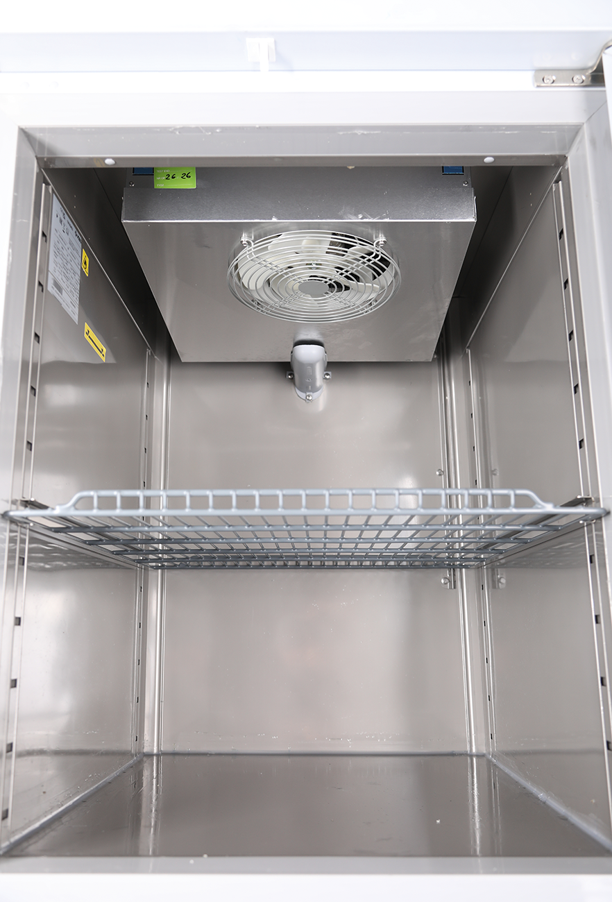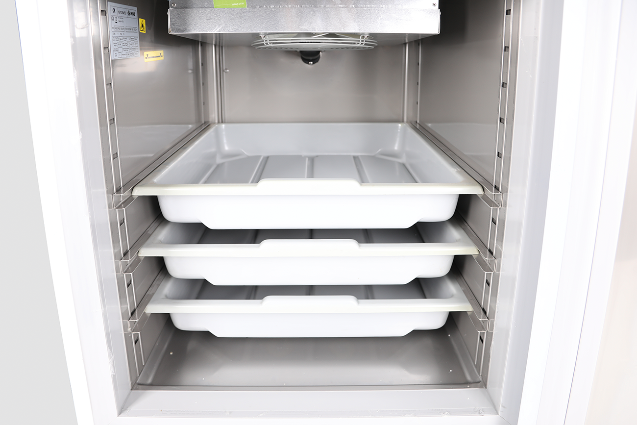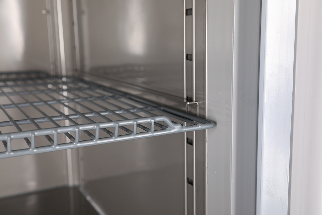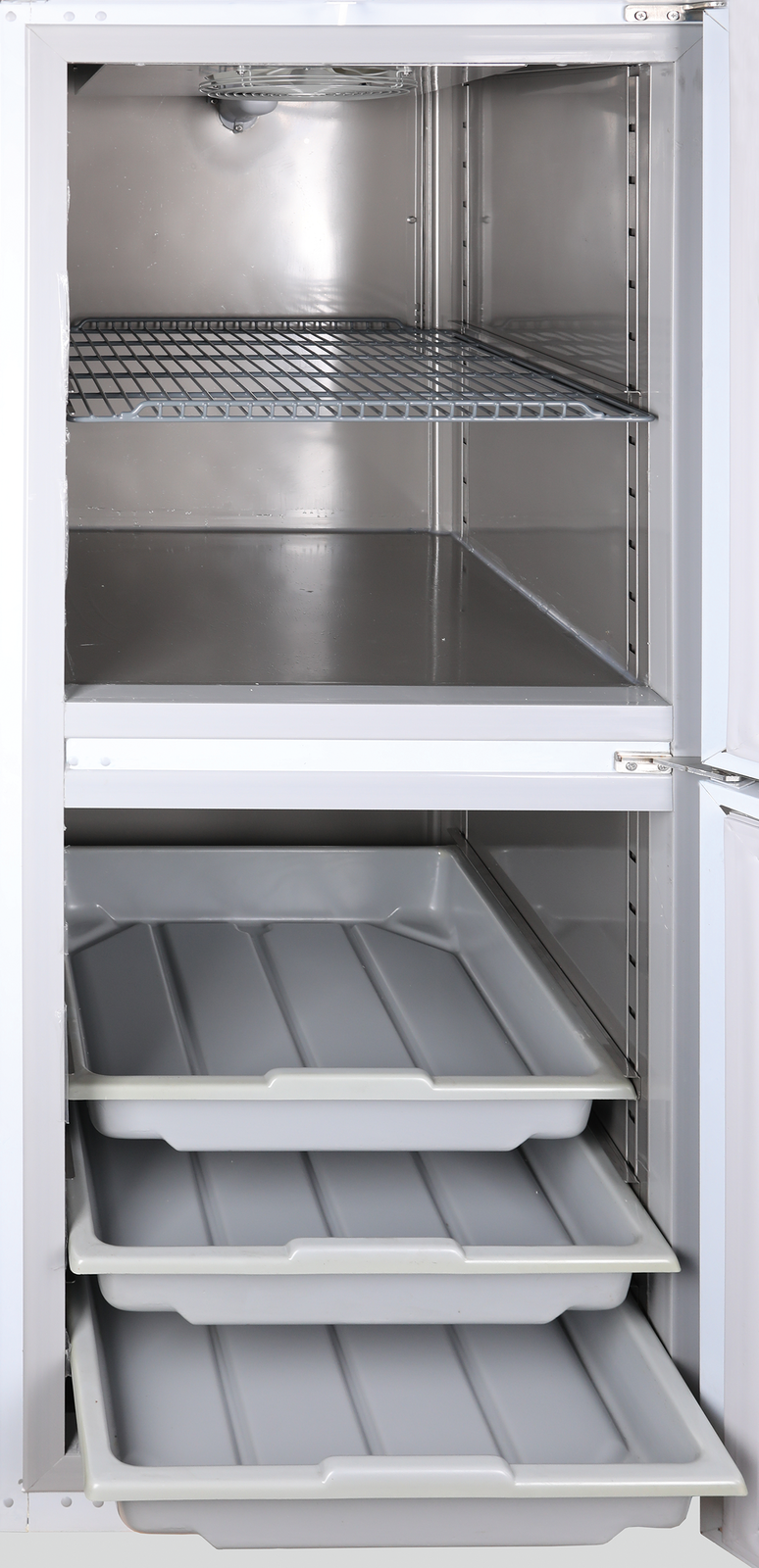 Umluft Edelstahl Kühl-Tiefkühlkombination. Elektronischer Steuerung. Digitaler Temperaturanzeige. Energiesparende 60 mm Isolierung. Energiesparenden Heißgas-Tauwasserverdunstung. Automatische Abtauung. Temperaturbereich Kühlabteil +/-0° C bis + 8°C. Kühlabteil Bruttoinhalt 280 Liter. Anschlußwert Kühlabteil 0,230 Watt. Temperaturbereich Kühlabteil -17° C bis – 21° C. Tiefkühlabteil Bruttoinhalt 251 Liter. Anschlußwert Tiefkühlabteil 0,415 Watt. Hochwertiger Edelstahl-Innenraum. Kühlabteil mit 1 Rost und 1 Paar Auflageschienen im Lieferumfang. Rost mit maximal 40 kg belastbar. Maximal können 9 Roste mit einem Abstand von 55mm eingebracht werden. Tiefkühlabteil inklusive 3 PVC Behälter. PVC Behälterabmessungen BxHxT 543 x 540 x 100mm. Leichte Reinigung des Innenraumes. Reinigungsablauf im Edelstahlbodern. Selbstschließende Tür mit Arritierung bei 90° Öffnung. Leicht wechselbare Tür-Magnetsteckdichtung. Türen mit senkrechter eingelassener Griffleiste. Höhenvertellbare Ausgleichsfüße. Abmessungen außen (B x T x H) 653 x 842 x 2040 mm. Temperaturbereich von +/- 0 °C bis 8 °C. Bestückungsmöglichkeit GN 2/1. Außenmaterial Edelstahl AISI 201. Innenmaterial Edelstahl CNS. Anschlußwert 0,645 kW 230 Volt. Bruttogewicht 175 Kg. Serienzubehör 1 Rost rilsalniert und 1 Paar Auflageschienen, 3 PVC Behälter. Kältemittel R 290 (Propan)/GWP 3. Nutzinhalt Kühlung 531 Liter. Klimaklasse 4.