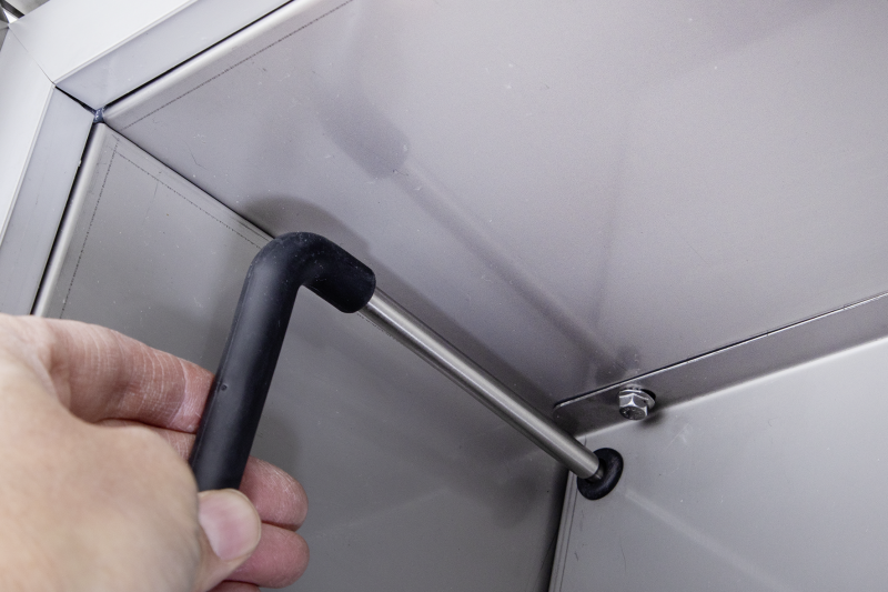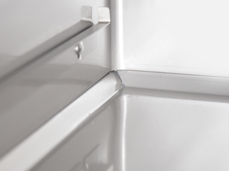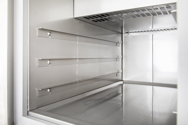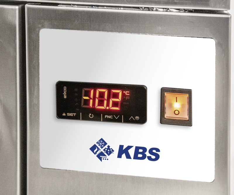 Schnellabkühler und Schockfroster. Edelstahl 3-seitig. Türrahmenheizung. Touch Screen-Steuerung. Schnellabkühlzyklus +90 °C bis +3 °C. Schockfrostzyklus +90 °C bis -18 °C. Kerntemperatur -18 °C. Automatischer Wechsel in den Konservierungsmodus. 35 mm Isolierung. Hygieneausführung. Innenraum mit gerundeten Ecken. Aufgesetzter Edelstahlgriff. Türanschlag links, nicht wechselbar. Leicht wechselbare Magnetsteckdichtung. Höhenverstellbare Ausgleichsfüße. Abmessungen außen (B x T x H) 590 x 700 x 520 mm. Temperaturbereich von 90 °C bis -18 °C. Außenmaterial Edelstahl. Innenmaterial Edelstahl. Anschlußwert 0,41 kW 230 Volt. Bruttogewicht 55 Kg. Serienzubehör Aufnahme für 3 Stück GN 1/1. Kältemittel R 290 (Propan)/GWP 3. Klimaklasse 5.