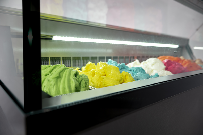 Speiseeis-Verkaufsvitrine. Gerader Glasaufbau. Frontscheibenheizung. LED Innenbeleuchtung, separat schaltbar. Elektronisches Thermostat. Automatische Abtauung und Tauwasserverdunstung der Ausstellungsfläche. Manuelle Abtauung des Reservefaches. Bestückung Bedienbereich 6 x 5 Liter Eisschalen Typ C oder 12x 2,5 Liter. Bestückung Reservefach 12 x 5 Liter Eisschalen Typ C oder 24 x 2,5 Liter. 4 Rollen für optimale Mobilität. Lieferung erfolgt ohne Eisschalen. Hohe Nachhaltigkeit da 95 % der Materialien wiederverwertbar sind. Abmessungen außen (B x T x H) 1190 x 677 x 1190 mm. Temperaturbereich von -5 °C bis -20 °C. Bestückungsmöglichkeit Eisschale. Außenmaterial Stahlblech grau, beschichtet, und geradem Glasaufbau. Innenmaterial Stahlblech grau, beschichtet. Anschlußwert 0,53 kW 230 Volt. Bruttogewicht 137 Kg. Kältemittel R 290 (Propan)/GWP 3. Bruttoinhalt 276 Liter. Nutzinhalt Kühlung 187 Liter. Warenpräsentationsfläche (TDA) 0,36 m². Energieverbrauch 4405 KWHJ. Energieeffizienzklasse C. Energieeffizienzspektrum A bis G. Klimaklasse 7. Temperaturklasse L1. EPREL Registrierungsnummer 405600. EU-Labelverordnung 2019/2018.