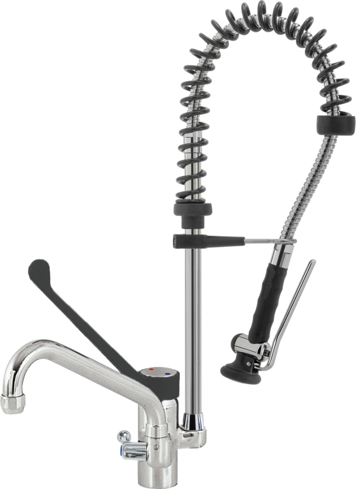 • Geschirrwaschbrause mit Einlochbatterie und Edelstahl Schwenkhahn PAK-frei