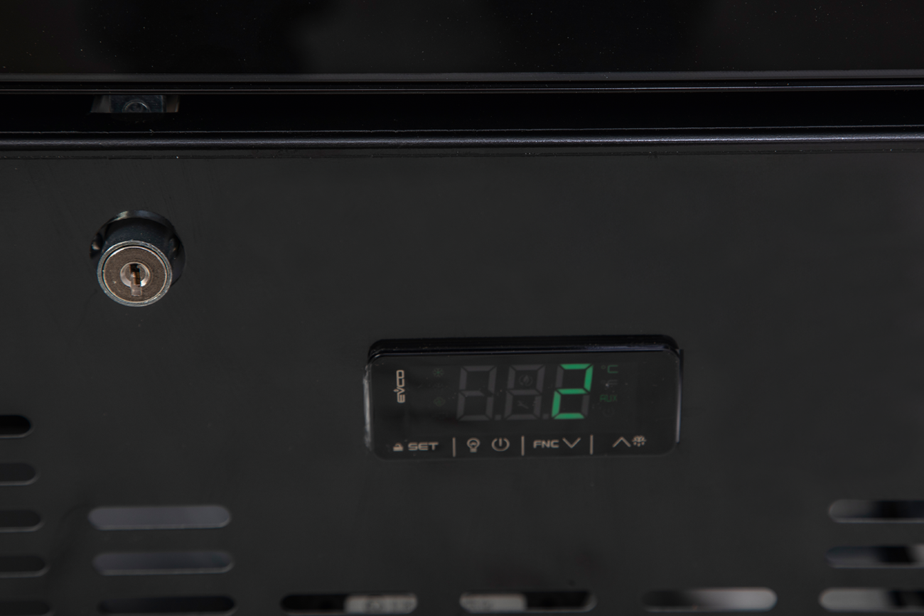 Professioneller Volltürtiefkühlschrank für die Gastronomie mit leiser Kühlung, digitaler Temperaturanzeige und manueller Regelung. Robustes Stahlblechgehäuse, hygienischer ABS-Innenraum mit 7 Schubladen und Verdampferrosten. Abschließbare Volltür mit ergonomischer Griffleiste, wechselbarer Türanschlag, 60 mm Isolierung sowie Füße und Rollen für flexible Aufstellung.