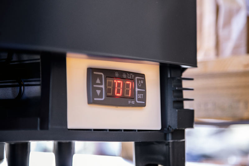 Ideal für Getränke und verpackte Lebensmittel. Vierseitige Panoramaisolierverglasung. Tür nicht überstehend. Tür mit Schloss. Servicefreundliche Türmagnetsteckdichtung. Elektronische Steuerung. Digitale Temperaturanzeige. Separater Beleuchtungsschalter. 2 vertikale LED Linien. Umluftkühlung. Automatische Abtauung und Tauwasserverdunstung. 3 CHR Roste höhenverstellbar. Abstand der Roststäbe nur 15 mm. Türanschlag rechts. Abmessungen außen (B x T x H) 425 x 380 x 960 mm. Temperaturbereich von 3 °C bis 12 °C. Außenmaterial ABS-Kunststoff. Innenmaterial PVC, CHR. Anschlußwert 0,18 kW 230 Volt. Bruttogewicht 36 Kg. Serienzubehör 3 Roste CHR. Kältemittel R 600a (Isobutan)/GWP 3. Bruttoinhalt 78 Liter. Warenpräsentationsfläche (TDA) 0,59 m². Energieverbrauch 1003 KWHJ. Energieeffizienzklasse C. Energieeffizienzspektrum A bis G. Klimaklasse 3. EPREL Registrierungsnummer 407969. EU-Labelverordnung 2019/2018.