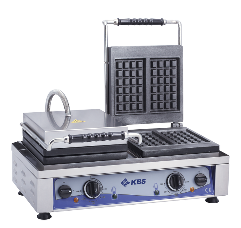 Gehäuse aus Edelstahl. Backplatten für Brüsseler Waffeln. Waffelgröße für 2 Stück: 10 x 17 x 1,5 cm. Kontrollleuchten. Ein-/Ausschalter. Temperatur stufenlos regelbar von +50 °C bis +300 °C. Resteschublade. Abmessungen außen (B x T x H) 300 x 320 x 300 mm. Temperaturbereich von 50 °C bis 300 °C. Außenmaterial CNS, Backplatten aus Gusseisen, Kunststoff. Anschlußwert 2,2 kW 230 Volt. Bruttogewicht 24 Kg.