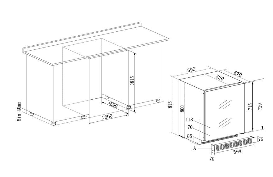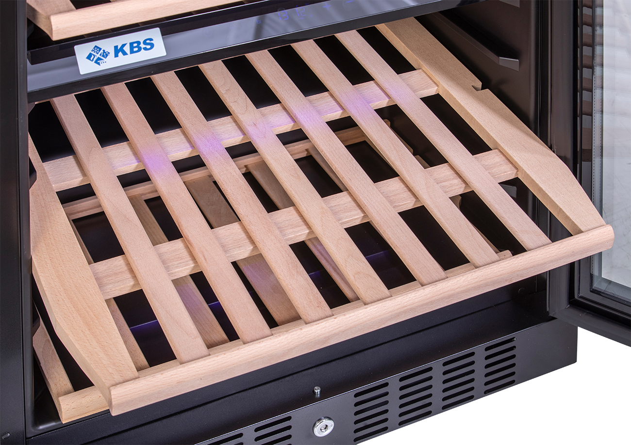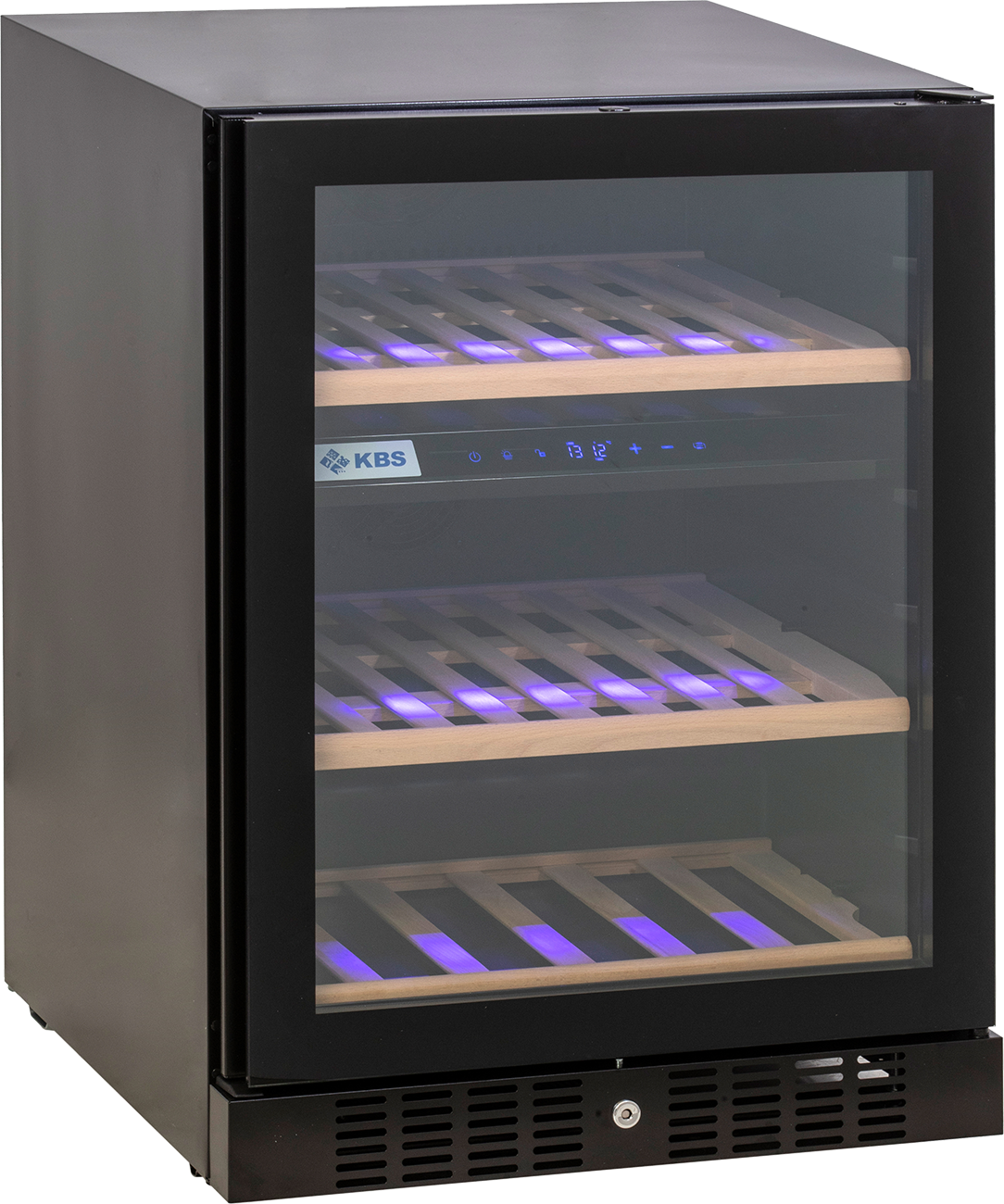 Glastür-Weinkühlschrank für die Präsentation und Lagerung. Unterbaufähig. Isolierglastür mit Schloss. 2 getrennte Temperaturzonen. Temperaturbereich oberes Kühlfach +5 °C bis +12 °C. Temperaturbereich unteres Kühlfach +12 °C bis +20 °C. Soft Touch Steuerung. Digitale Temperaturanzeige. LED Innenbeleuchtung, separat schaltbar. Umluftkühlung. Hochwertige Low E-Isolierglastür mit Argon. Türrahmen mit integrierter Griffleiste. Frontpanel in schwarz. Aktivkohlefilter. Leicht wechselbare Türmagnetsteckdichtung. Höhenverstellbare Ausgleichsfüße. Abmessungen außen (B x T x H) 595 x 564 x 820 mm. Temperaturbereich von 5 °C bis 20 °C. Bestückungsmöglichkeit Weinflaschen. Außenmaterial Rahmen Edelstahl Seitenteile und Decke PVC beschichtet, dunkel. Innenmaterial ABS Kunststoff dunkel. Anschlußwert 0,090 kW 230 Volt. Bruttogewicht 54 Kg. Serienzubehör 3 Holzroste. Kältemittel R 600a (Isobutan)/GWP 3. Luftschallklasse C bei 39 dB. Bruttoinhalt 135 Liter. Nutzinhalt Flaschen 46 Stück. Energieverbrauch 106 KWHJ. Energieeffizienzklasse F. Energieeffizienzspektrum A bis G. Energieeffizienzindex EEI 125. Klimaklasse N. EPREL Registrierungsnummer 2321410. EU-Labelverordnung 2019/2016.