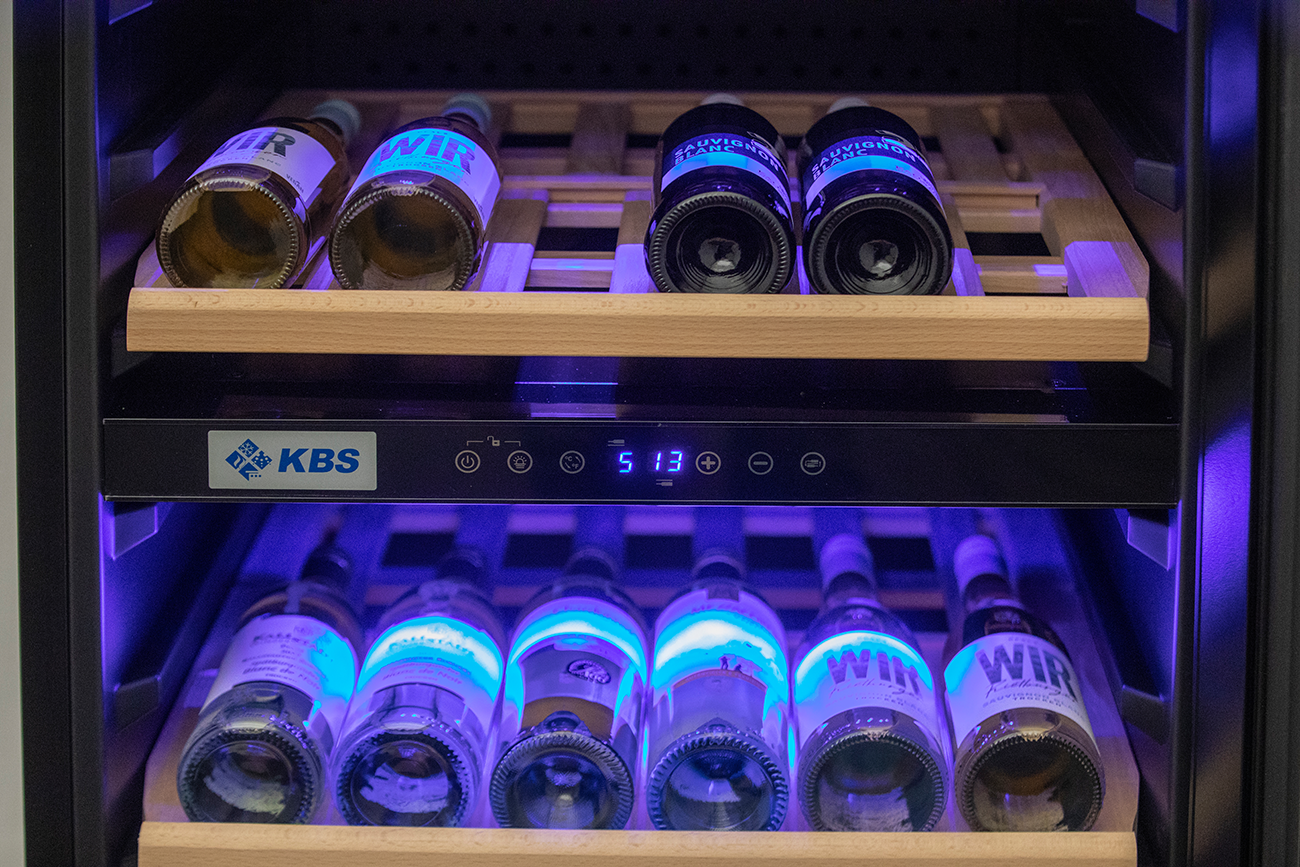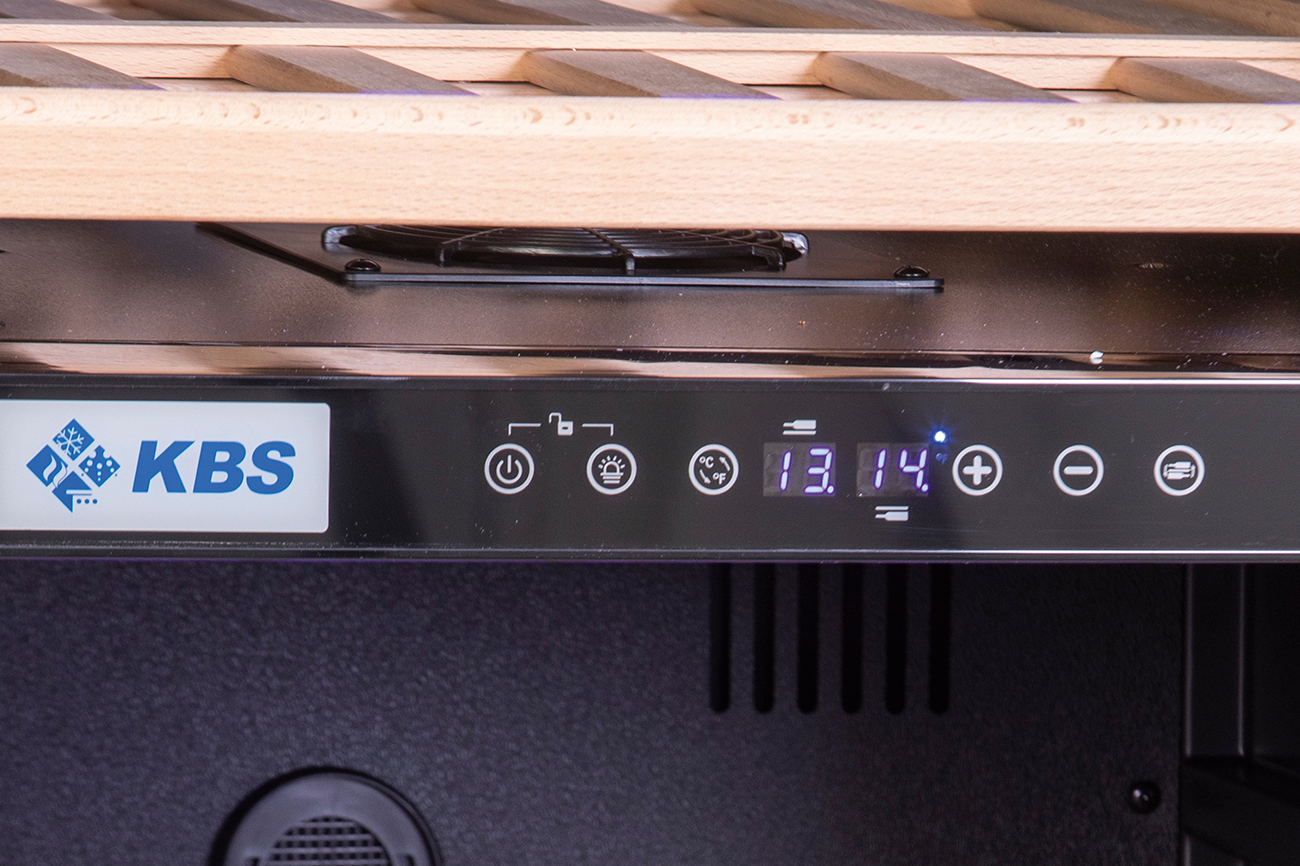 Glastür-Weinkühlschrank für die Präsentation und Lagerung. 2 getrennte Temperaturzonen. Isolierglastür mit Schloss. Temperaturbereich oberes Kühlfach +5 °C bis +12 °C. Temperaturbereich unteres Kühlfach +12 °C bis +20 °C. Soft Touch Steuerung. Digitale Temperaturanzeige. LED Innenbeleuchtung, separat schaltbar. Umluftkühlung. Hochwertige Low E-Isolierglastür mit Argon. Türrahmen mit integrierter Griffleiste. Frontpanel in schwarz. Türanschlag rechts. Aktivkohlefilter. Leicht wechselbare Türmagnetsteckdichtung. Höhenverstellbare Ausgleichsfüße. Abmessungen außen (B x T x H) 595 x 680 x 1775 mm. Temperaturbereich von 5 °C bis 20 °C. Bestückungsmöglichkeit Weinflaschen. Außenmaterial Rahmen Edelstahl Seitenteile und Decke PVC beschichtet, dunkel. Innenmaterial ABS Kunststoff dunkel. Anschlußwert 0,242 kW 230 Volt. Bruttogewicht 114 Kg. Serienzubehör 6 Holzroste. Kältemittel R 600a (Isobutan)/GWP 3. Luftschallklasse C bei 40 dB. Bruttoinhalt 418 Liter. Energieverbrauch 146 KWHJ. Energieeffizienzklasse G. Energieeffizienzspektrum A bis G. Energieeffizienzindex EEI 139. Klimaklasse N. EPREL Registrierungsnummer 2321396. EU-Labelverordnung 2019/2016.